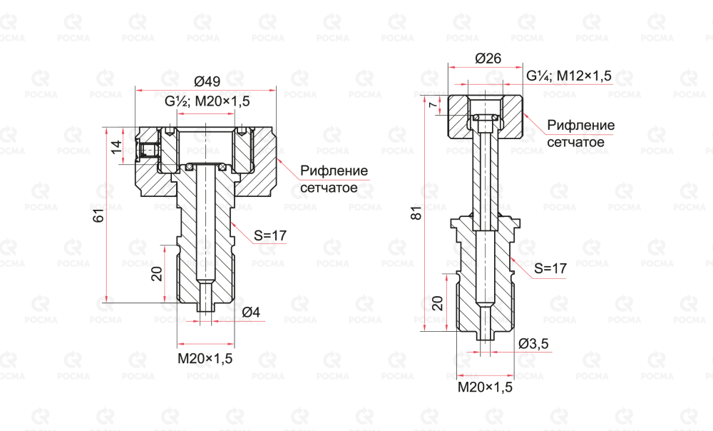 | Быстрозажимной патрон | наружная M20×1,5 | внутренняя M12×1,5; G¼ | 4355 |