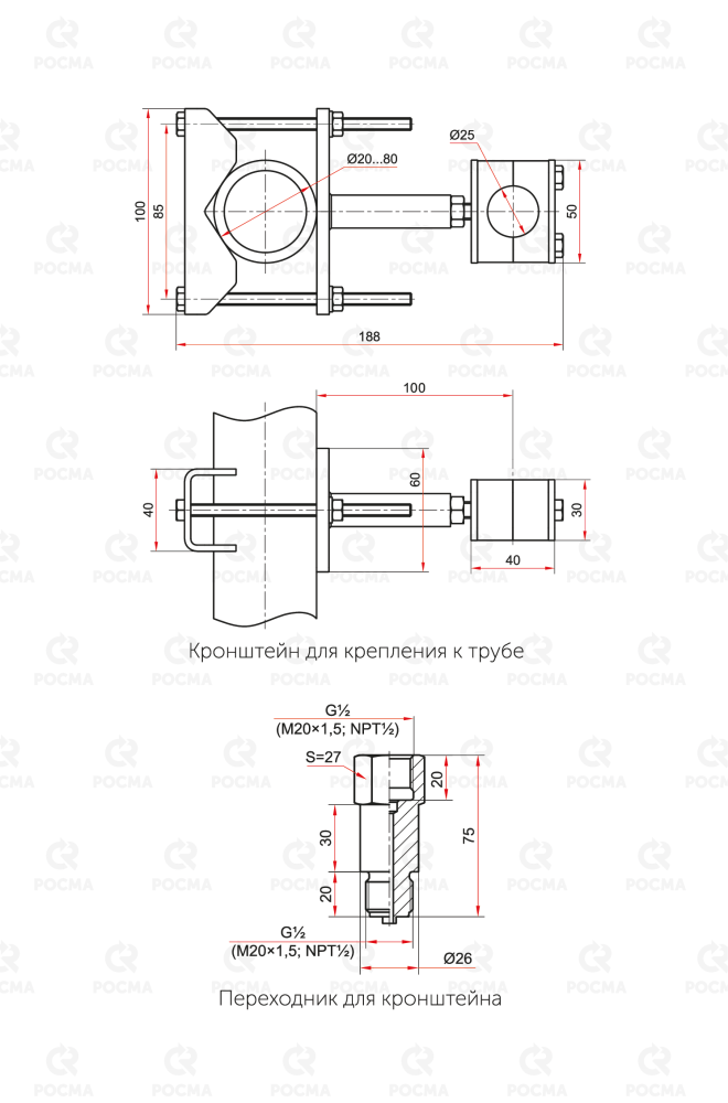 | Кронштейн для крепления к трубе Ду20-Ду80, L=100мм, нерж. | — | 2350 |