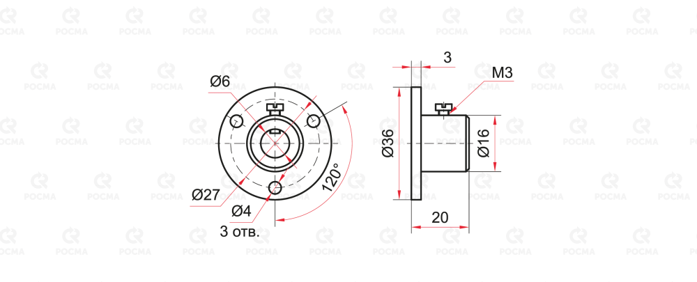 Фланец монтируется на поверхность системы плоской частью и закрепляется винтами. С помощью винта на фланце выполняется регулировка требуемой глубины погружения термометра в воздушном канале.