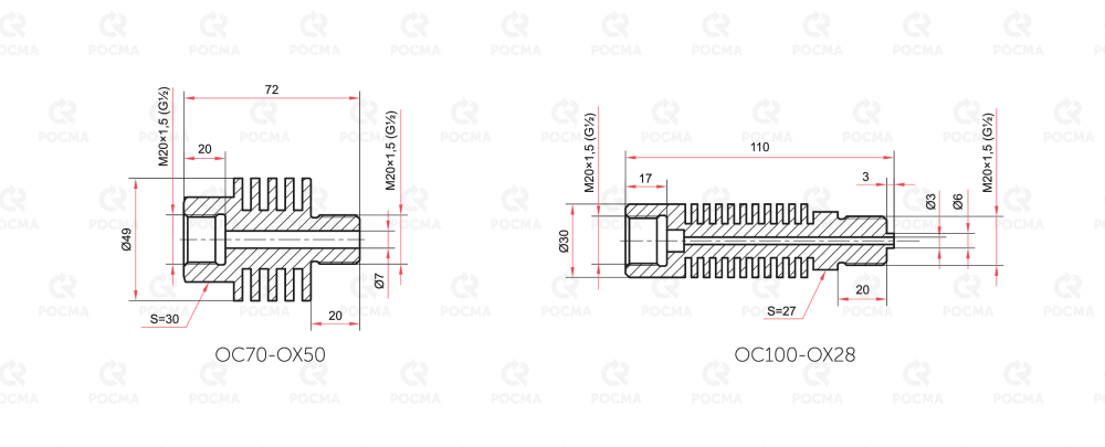 | OC70-OX50 | внутренняя G½ — наружная G½