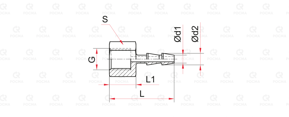 | L | L1 | S | G | Внутренний Ø подсоединяемой трубки | d1 | d2 | Вес |