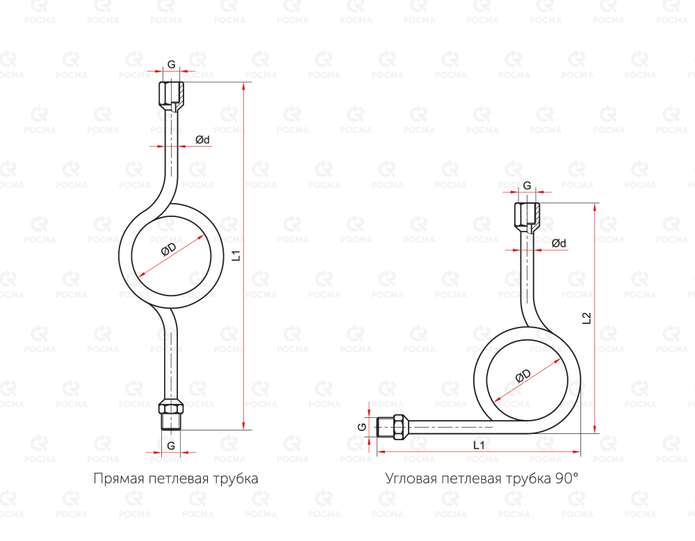 | Петлевая трубка | L1 | L2 | D | G | d |
