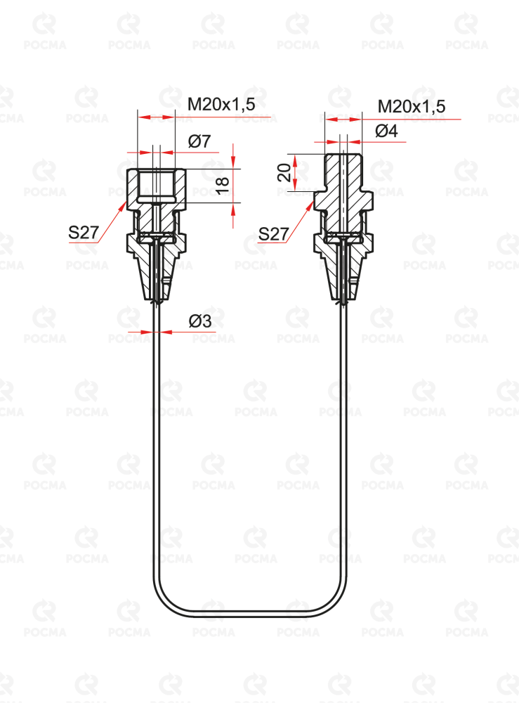 Рукав соединительный РС-2 М20×1,5 внутр. — М20×1,5 наруж.