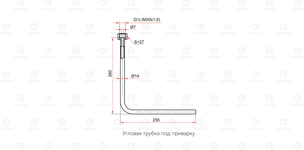 | Трубка угловая (отвод), с накидной гайкой | внутренняя G½ — под приварку внутренняя М20×1,5 — под приварку | сталь | 530 |