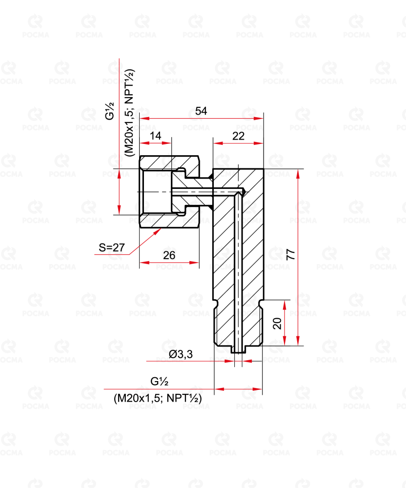 | Угловой коннектор | внутренняя G½ — наружная G½ внутренняя М20×1,5 — наружная М20×1,5 внутренняя NPT½ — наружная NPT½ | нержавеющая сталь | 1390 |