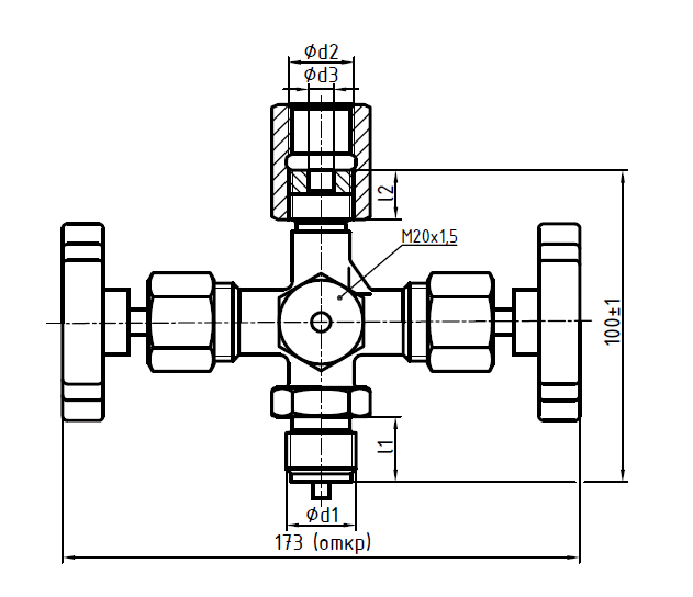 | Клапан КЗИТ-60н-А-М20х1,5/М20х1,5 | М20×1,5 | М20×1,5 |