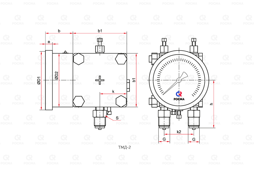 | Указатель рабочего давления (1 маркер / 2 маркера на циферблате), с установкой | ТМД-2-521, -621 | 40 / 50 |