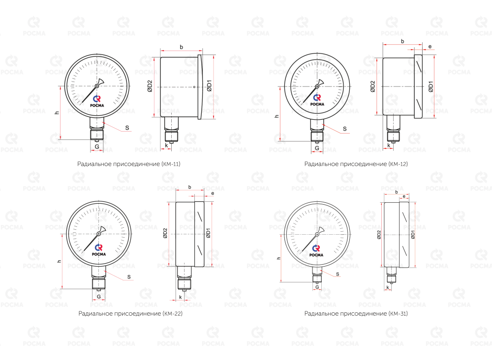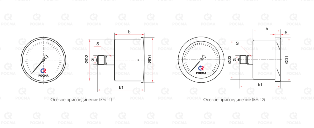 | Указатель рабочего давления (1 маркер / 2 маркера на циферблате), с установкой | КМ, КМВ | 40 / 50 |