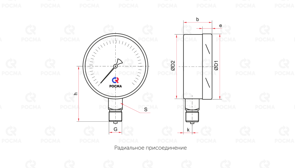 | Присоединение (расположение штуцера) | радиальное | Р |