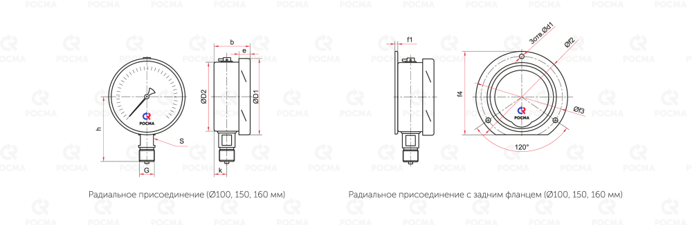 При монтаже манометров в щитах, панелях, стенах или прочих поверхностях рекомендуется использовать фланцы.
