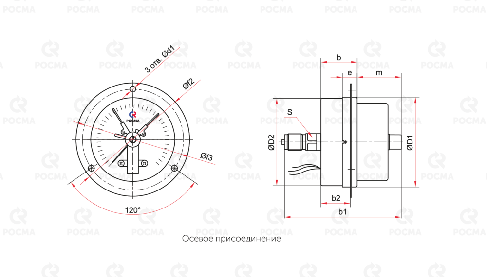 Манометры осевые с передним фланцем и электроконтактной приставкой