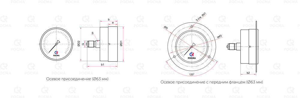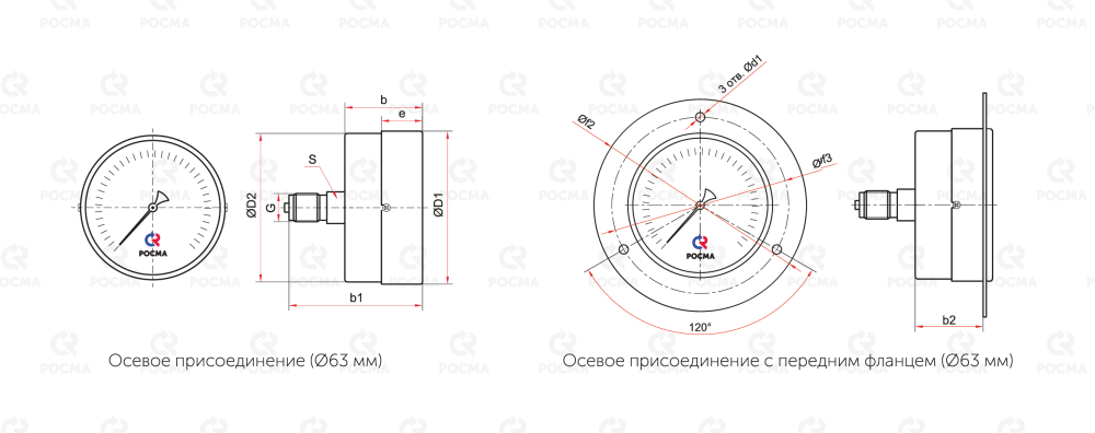 | Резьба присоединения | Ø63 | G¼ / М12×1,5 |
