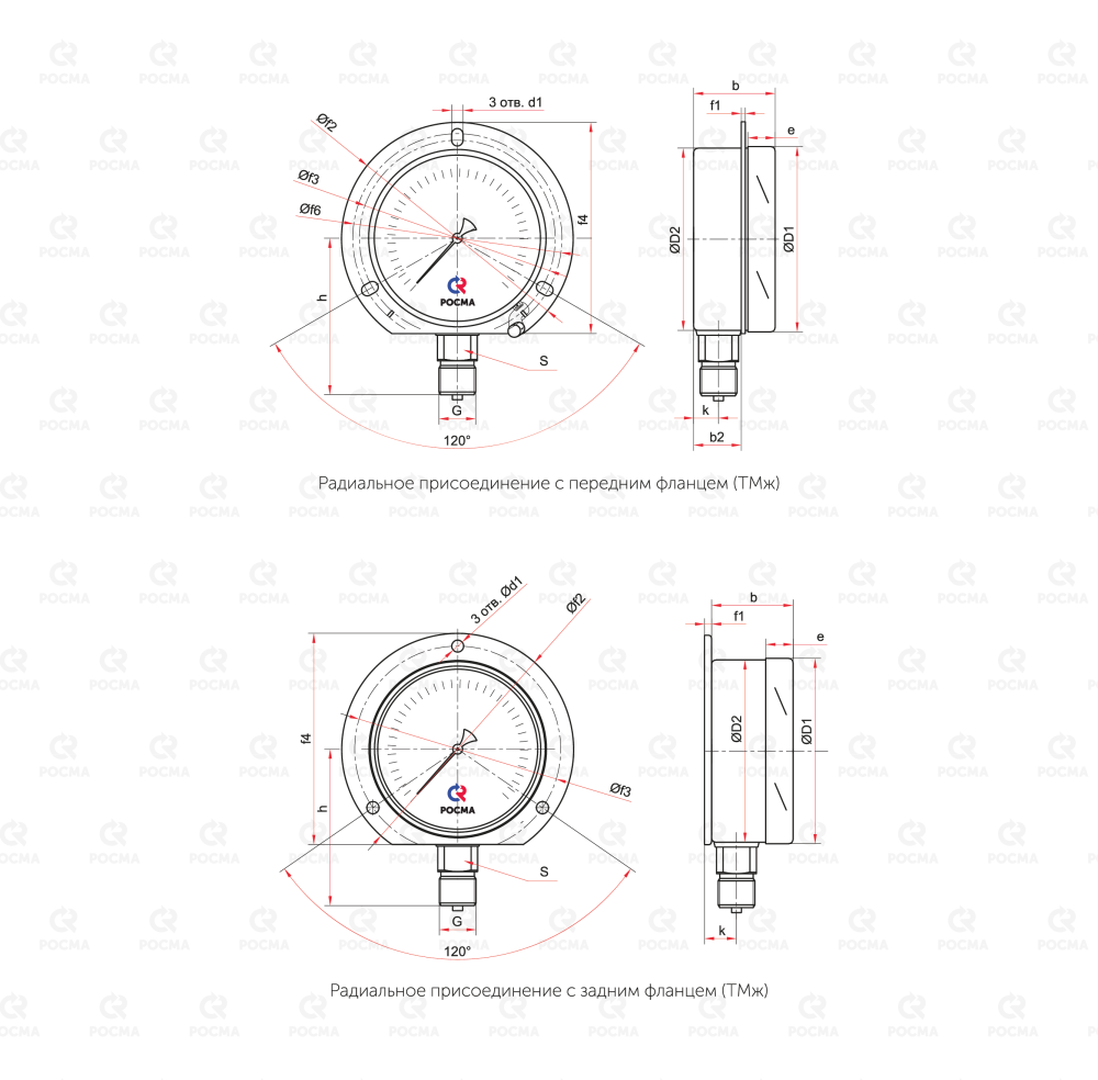 Манометры оснащены фланцами для монтажа в щитах, пультах управления, или других поверхностях технологических объектов. Монтаж (демонтаж) прибора должен производиться при отсутствии давления в системе. Присоединение к источнику давления осуществляется с применением гаечного ключа и накидных гаек.
