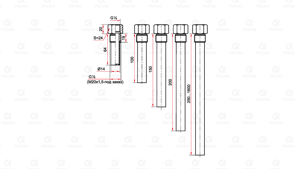 | Длина погружной части, мм | 64 / 100 / 150 / 200 / 250 / 300 | |